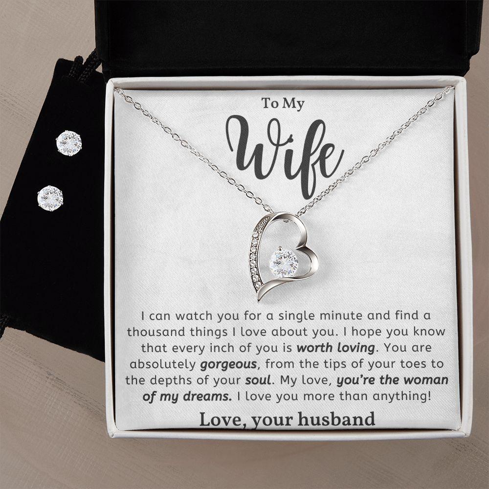 To My Wife - Woman of my Dreams - Forever Love Heart Pendant and Earring Set